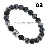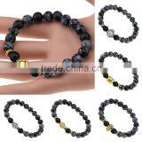 New Hot Models Natural Black Alabaster Bead Gold Silver Plated Buddha Leopard Head Bracelet Charm Stretch Beaded Yoga Bracelet