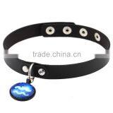 Home > Products > Necklaces > 12 Zodiac Charm Pendant Glass Gem Cabochon Necklace Black Leather Collar Choke