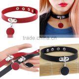 Anime Harajuku Gothic Punk Style Multi Color Alloy Round Pendant PU Leather Choker Necklace Collar Chocker