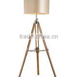 Popular Tripod Floor Lamp Fz-2 Wooden Base Fabric Lampshade