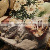 Cats Cotton Jacquard Woven Sofa Throws Blanket With Custom Pattern