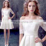 White Women's Sexy Half Sleeve Lace Patchwork Hollow Out Short Dress