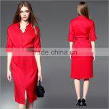 100%Tencel Lady Women's 3/4 Sleeve Classy V-Neck Casual Fashionable Dress 2016