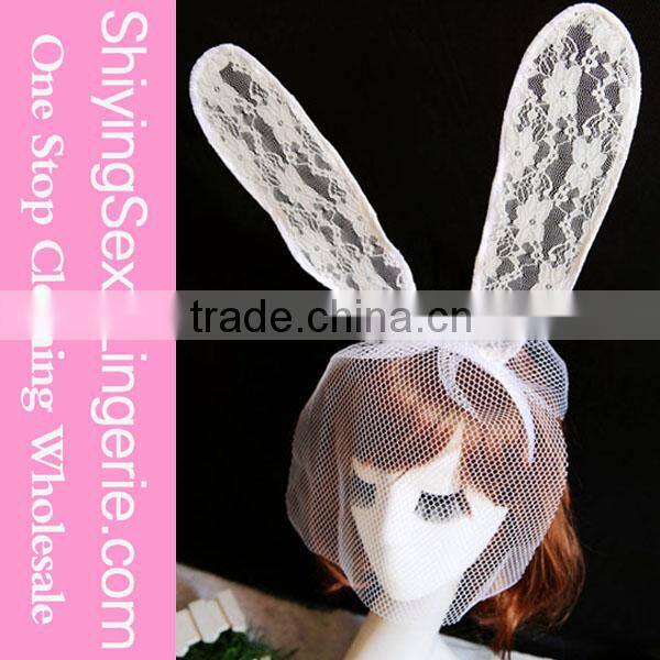 Home > Products > Sexy Accersories > Wholesale White Lace Rabbit Ears Headband with Face Veil Costume Hat funny party hats
