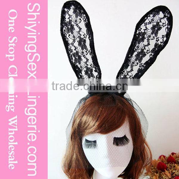 Product Name | Wholesale White Lace Rabbit Ears Headband with Face Veil Costume Hat funny party hats |