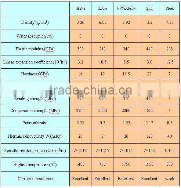 1). Si3N4 and ZrO2 ceramic balls and rollers.