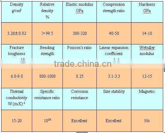 4.Low density of 3.26 g/cm3, high bending strength and high hardness. It can be considered as wear resistant materials.