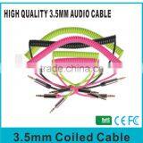 6.5mm Car Audio Coiled Cable Various Colors With 24k Gold Plated 3.5mm Aux Cable