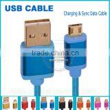 Genuine Original Fabric Braided Micro Usb Data Charging Cable With 24k Gold Plated for Samsung/HTC/Nokia/Blackberry