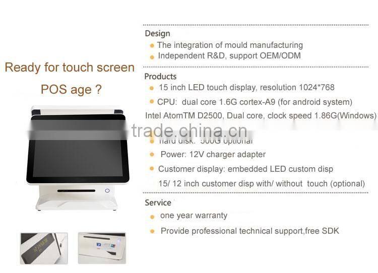 Tablet Pos Machine , 15" Touch Screen Display Dual Core Pos 58 Printer Thermal Driver Quality Choice