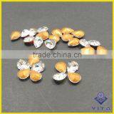 Fashion Machine Cut Crystal Glass White Artificial Stone Point Back Gold Bottom Tear Drop Rhinestone
