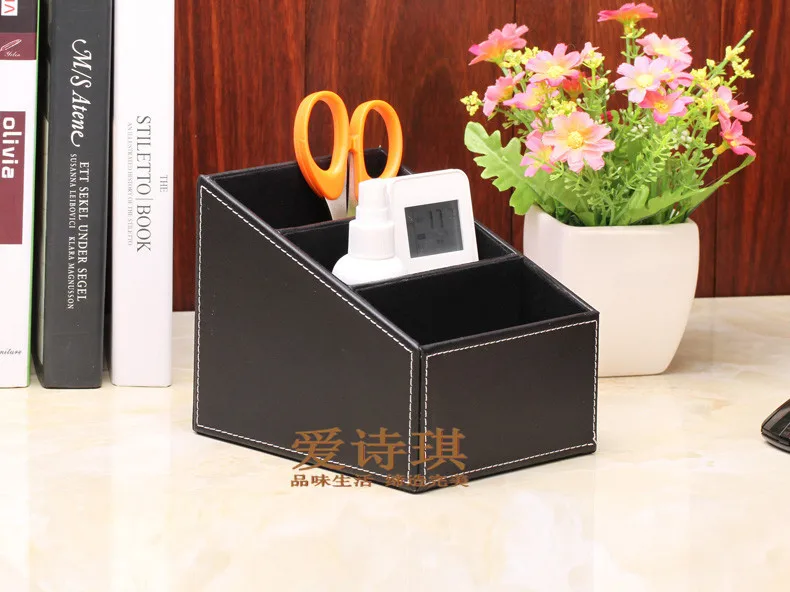 High Grade Multifunctional Fashion Desktop Leather Business Revolving Office Supplies Storage Stationery Black Remote Control se