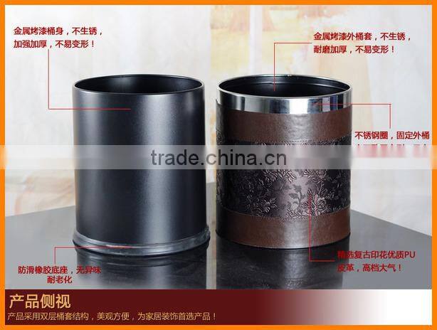 Continental Double Stainless Steel Trash Can Without Cover Fashion Leather Household Containing Cylinder Creative Hotel 10L