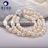 Pearl Jewelry 3 Row Pearl Bracelet White Color Freshwater Pearl With Good Price
