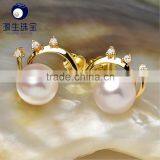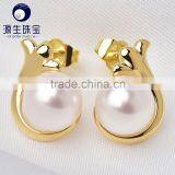 Double Side Fashion Pearl Earring Akoya Pearl 6-8mm High Luster Golden /white Color
