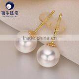 Fashion Jewelry 8--8.5mm White and Golden Saltwater Circular Akoya Earrings for Women
