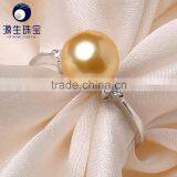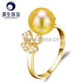 AAA Akoya Pearl Golden/white 8mm Elegant Female Good Pearl Ring Designs