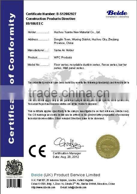 Yuante new material is a green energy saving products, The product is High recyclable, eco-friendly, anti-UV; Moisture/Water resistant; Various ;Easy to install and clean; Requires no painting, no glue; Weather resistant, minus -40°C to 60°C; anti-slip, less cracking, less warping etc..