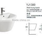 YJ1300 Ceramic Bathroom Basin Hexagonal Ceramic Wall Hung Wash Basin