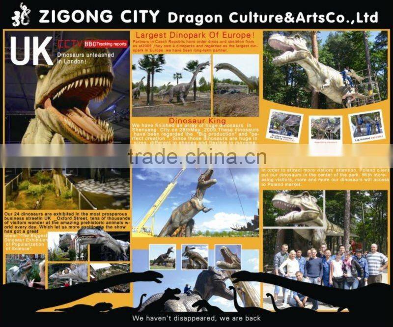 (7)Remarks: All our dinosaur costume made up of well treated metal frame, servo motors driven for movements, skined or fleshed with a high density foam, and manually sculpted and coated by a professional artist with a high grade silicon rubber to have an alive-look and touch and flexible to have fine and smooth movements and painted with a custom desired color.