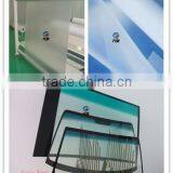 TPU (Thermoplastic Poly Urethane) is the best interlayer film for laminated glass. Especially for building laminated glass, bullet-proof laminated glass and auto windshield. TPU laminated glass features high tensile stength, excellent weatherability, high transparent and long service life. It could be used for 40 years as outside building glass.
