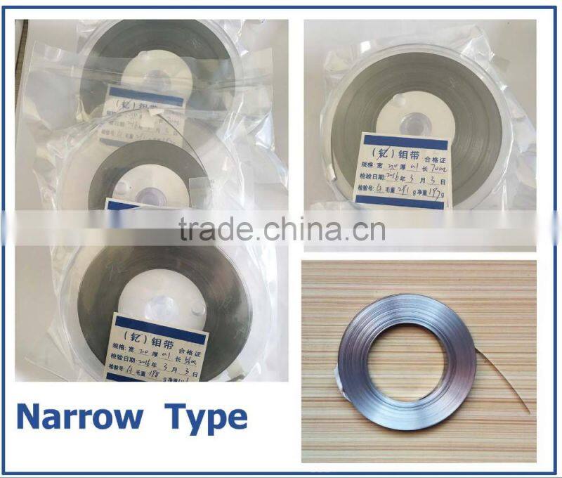 The molybdenum foil belt holds the better straight uniformity, width tolerance with+-0.002mm., thickness tolerance within +-0.002mm.