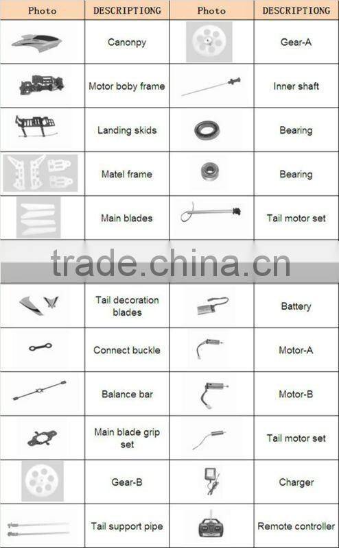 Product included: Helicopter*1,Controller*1, instruction *1 Spare parts