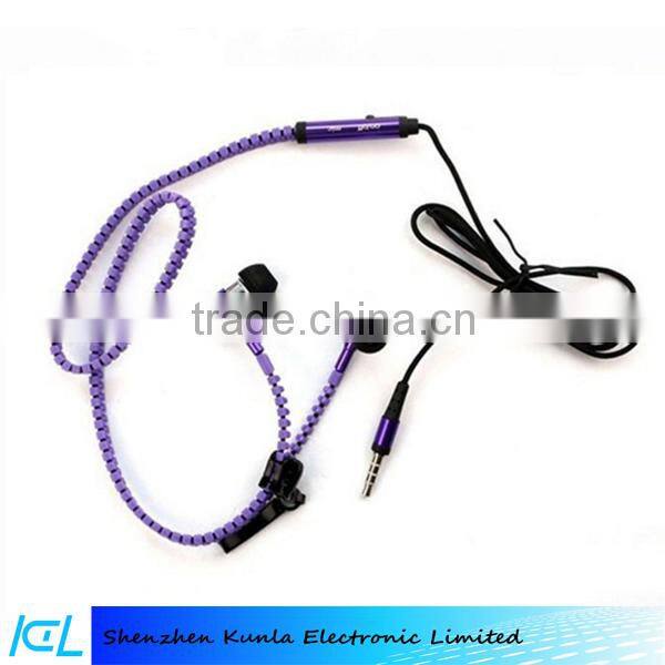 2015 christmas present zipper earphone, headset, headphone for IOS&Android smartphone, MP3 Player and PSP gamer