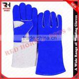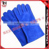 Long Blue Leather Welding Gloves, Heat Proof, One Piece Back