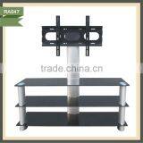 Black Tempered Glass TV Stand With Aluminium Tube RA070