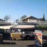 Awning rotates 270 degrees covering the side and rear of vehicle