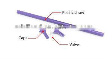 Colorfull valves, caps, plastic straws for balloons. You can find them inside the packaging. You can easily assemble a balloon with them.