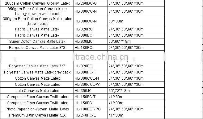 360G/M2 Premium Quality Glossy Cotton Inkjet Canvas of 24",36" Width,18M Long