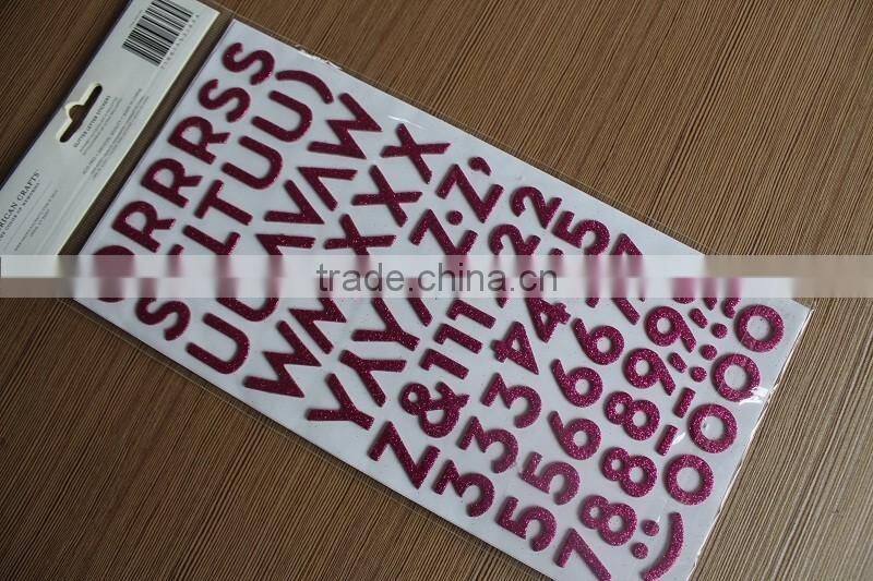 2015 New Product Safe&non-toxic Alphabet Letter Glitter Chipboard Sticker for Home Decor