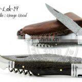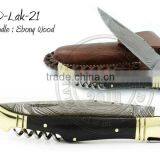 Damascus Steel Folding Knife,Buffalo Horn, Camel Bone, Stag
