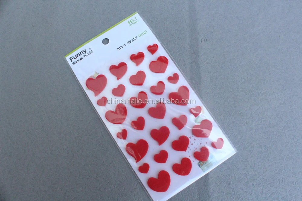 2016 Korea Funny Felt Sticker,loving Heart Felt Sticker for Promotional Gift
