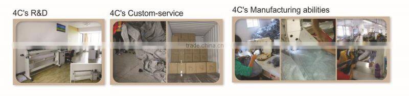 China Car Cover Company (4C) , the original car cover manufacturer, has extended its product lines to all kinds of protective textile covers for Marine, Powersport and Home & Patio Furniture as well as pets applications, since 2005, and now is reconstructed and refresh for superior custom service. 4C has abundant material source & development, sophisticated design and advanced manufacturing capabilities and a young yet experienced team for sales and whole operation. 4c's Mission is to be recognized as the quality leader in our industry. Our careful focus on serving each Customer's special needs and providing total satisfaction enables us to grow, to provide an equitable return on investment, and to create opportunities for all of our employee-Team Partners. 4C stands for our Creative & Cost-effective products and our Courageous & Collective goal!
