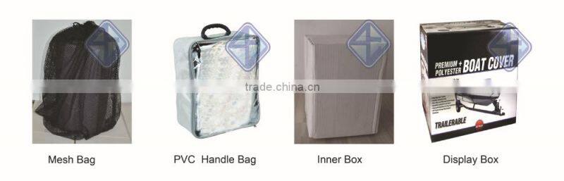 Different packing ways for Boat Cover 1) Free storage bag 2) PE/PVC bag with insert cardboard 3) Inner Box with color sticker 4) Customized display box