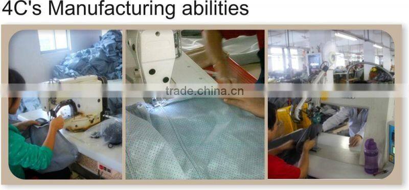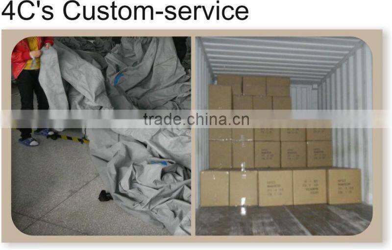 China Car Cover Company (4C) , the original car cover manufacturer, has extended its product lines to all kinds of protective textile covers for Marine, Powersport and Home & Patio Furniture as well as pets applications, since 2005, and now is reconstructed and refresh for superior custom service. 4C has abundant material source & development, sophisticated design and advanced manufacturing capabilities and a young yet experienced team for sales and whole operation. 4c's Mission is to be recognized as the quality leader in our industry. Our careful focus on serving each Customer's special needs and providing total satisfaction enables us to grow, to provide an equitable return on investment, and to create opportunities for all of our employee-Team Partners. 4C stands for our Creative & Cost-effective products and our Courageous & Collective goal!