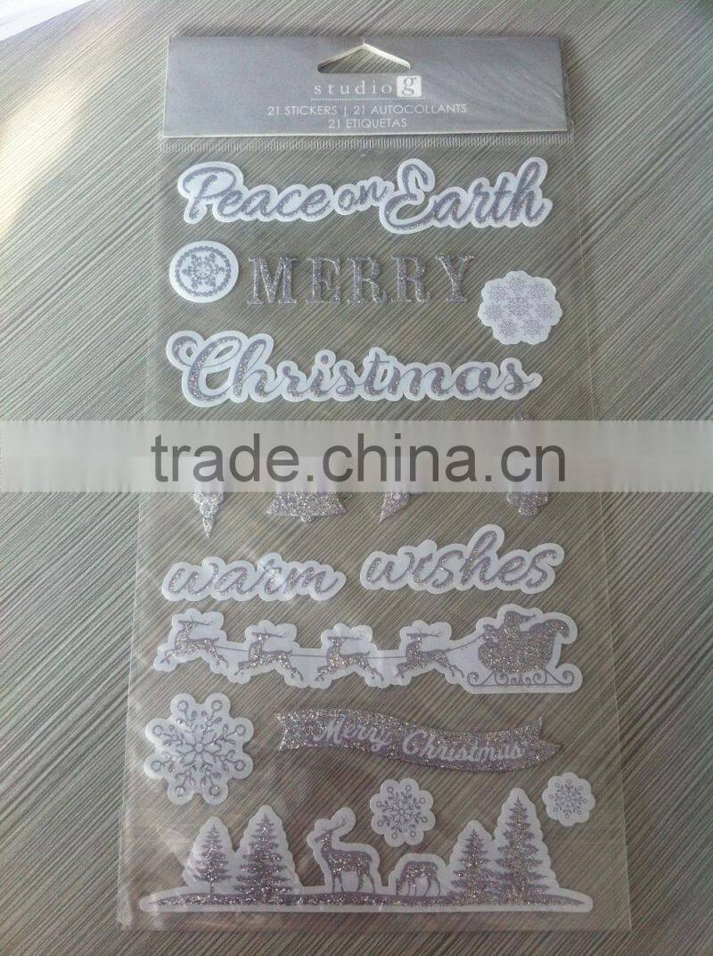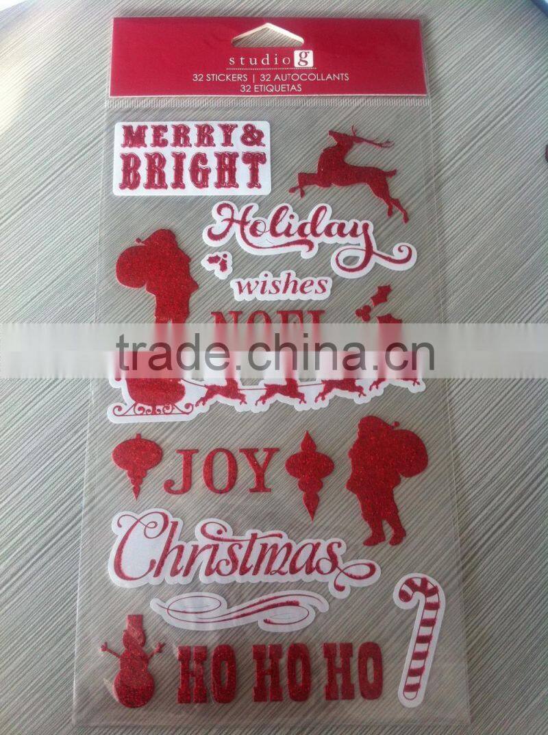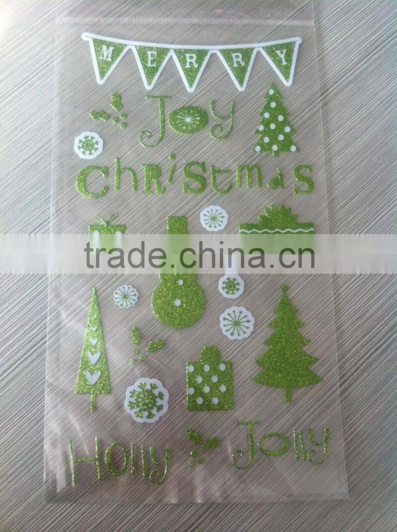 2015 New Design Merry Christmas Glitter Pvc Sticker, Custom Paper Sticker,home Decoration Pvc Sticker Paper