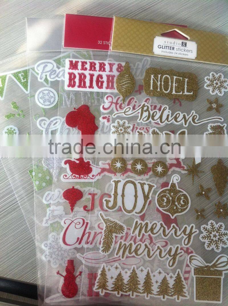 M-P005 Merry Christmas Glitter Pvc Sticker,removable Sticker Paper,pvc Sticker Paper
