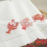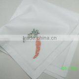Hand Embroidery Napkin Material:100% Linen,linen/cotton,100%cotton Size:15*15CM,30*30CM,45*45CM,customized size is available Color: any color is available,such as white,beige,yellow,blue etc., Style: plain,printing,embroiedery,handhemstitch,dot hemstitch,jacquard,lace,color weaved,etc., Fishing: By Hand Embroidery Lable:could be printed with customer's logo Sample: Available Welcom OEM order!