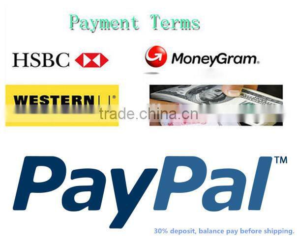 | Payment terms: | 30% deposit, balance to be paid before shippment. |