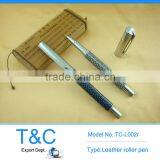TC-L012r Metal Leather Business Roller Pen With Art Special Silver Clip