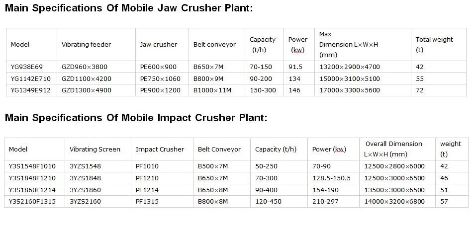 Quarry and Mining Mobile Crusher Plant, Jaw Crusher Plant, Cone Crusher Plant, Impact Crusher
