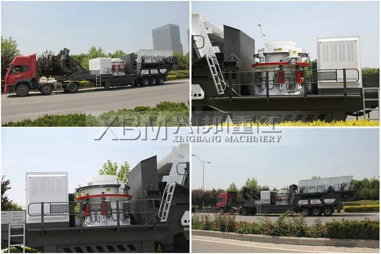 Movable cone crusher mounted on tow truck is used for stone crushing for construction, mining. To offer the 0.5mm, 5-10mm, 10-20mm, 10-30mm, 20-40mm, 30-50mm mateirals for construction, It is famous for optimized material shape. To crush metal mine and non-metal mine, it is famous for smaller output size, which will be easier for grinding and save much power.