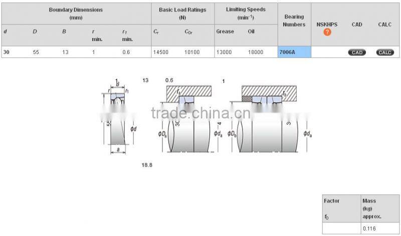 Home > Products > Angular Contact Ball Bearings > Single-row & Steel Ball Angular Contact Ball Bearing H7006C/P4 (Size 30*55*13mm)