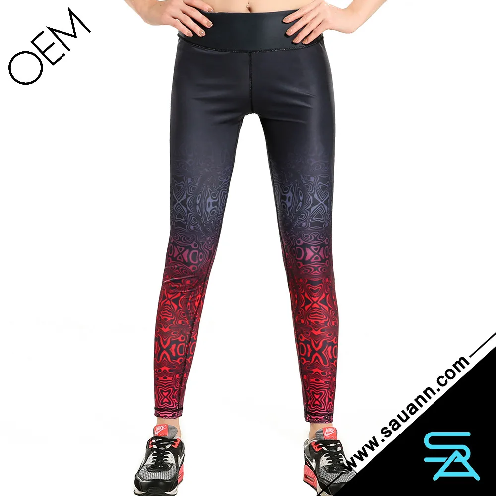 OEM Women Digital Custom Printed Leggings Capri Red Leggings