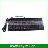 108 keys IP65 compact front panel mounting hospital meditech keyboard with IP68 optical trackball, metal dome key switch technology with short stroke 0.45mm.