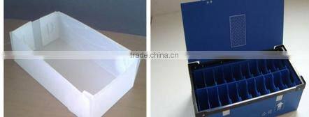 | Applications: | 1. Packing: the toughness and hollow Sheet can easily be bent and cut, it can be designed as all kinds of transportation box, mailbox, display rack, partition, gift boxes, food packing etc. |